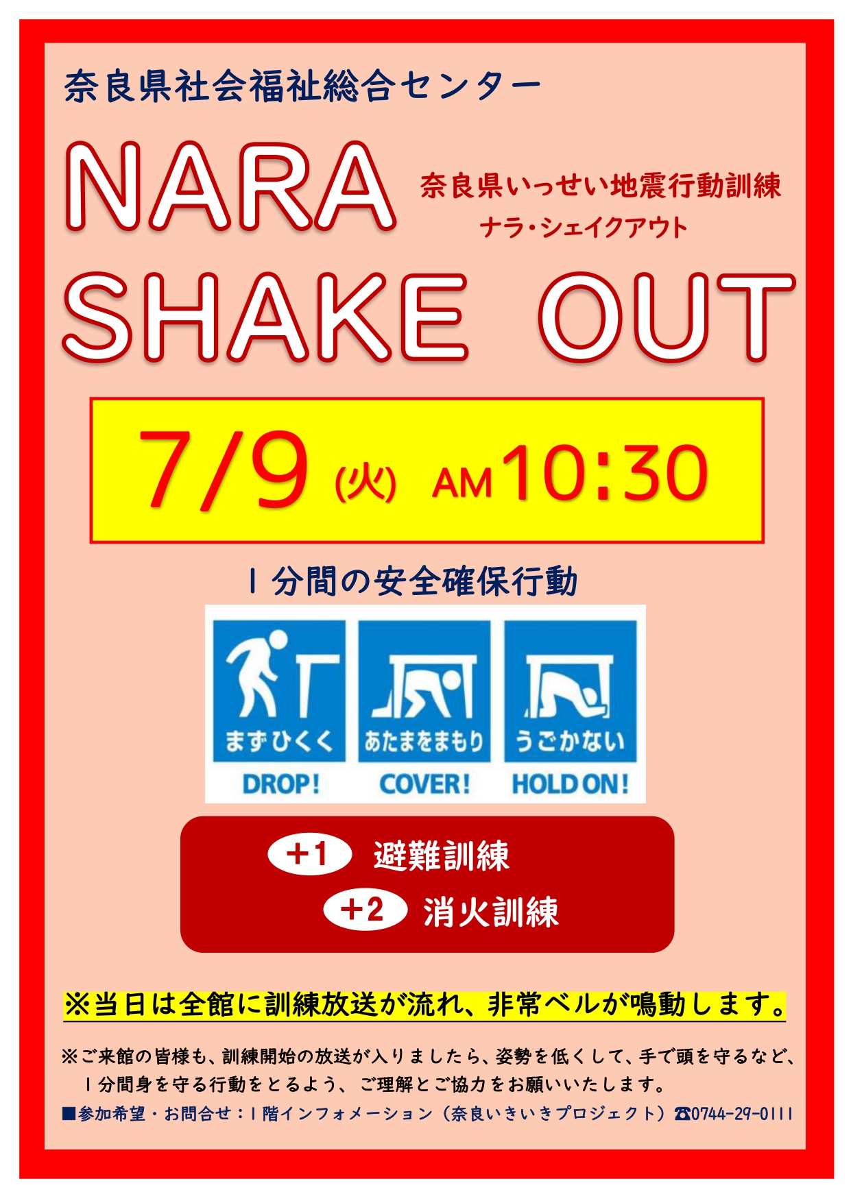 ナラ・シェイクアウト(奈良県いっせい地震行動訓練)に参加します。