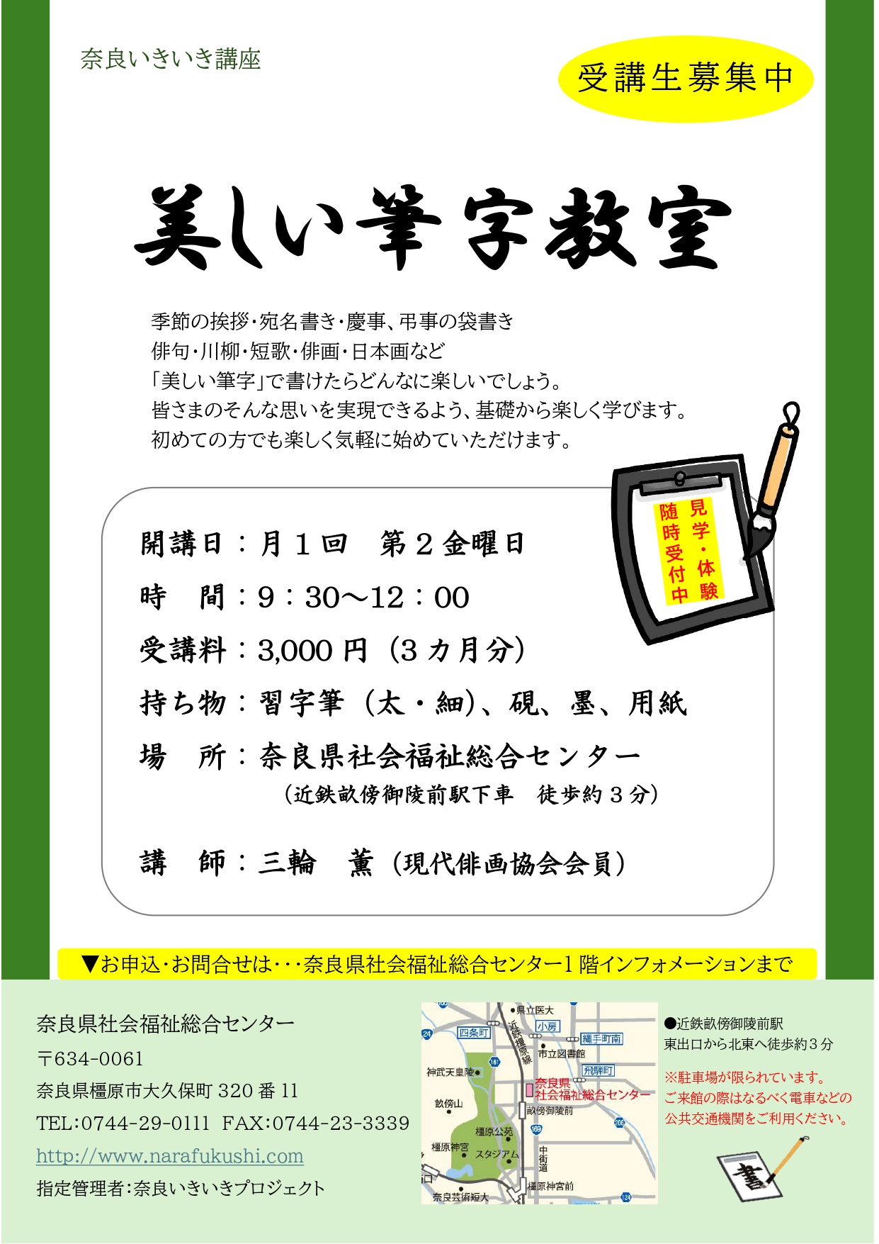 ・美しい筆字教室 月1回 金曜日