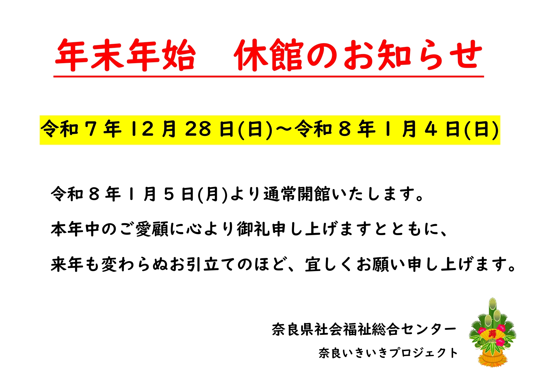 休館日:令和7年12月28日(日)~令和8年1月4日(日)
